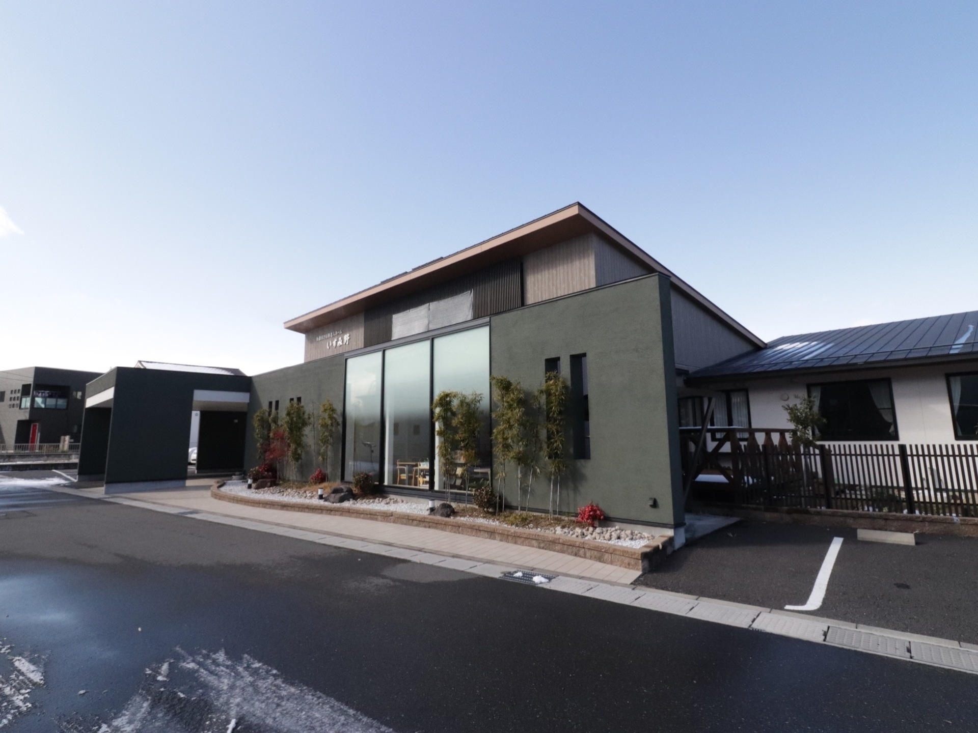 介護付き有料老人ホーム いずみ野は、定員20名のアットホームな施設です。あたたかい気持ちを持って利用者さまに寄り添い、お一人お一人を尊重したケアを行っています。施設は和風モダンな造りが特徴で、高い天井が開放的な食堂や畳コーナーなどで利用者さまにくつろいでいただいています。厨房も広くて清潔です。