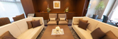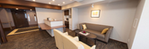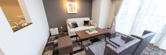 ソファーが備え付けられた居室は、落ち着いた色合いでまとめられ、ゆったりとした時間を過ごせる設計です。