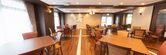 ゆったりと配置されたテーブルセットが、安らぎある食事時間を演出しています。洗練されたデザインが、あたたかみのある空間を提供しています。