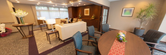 ゆったりとした椅子の配置で、柔らかな光が差し込むリラックスできる休憩室です。お一人でも、他の方とも過ごしやすい空間が整っています。