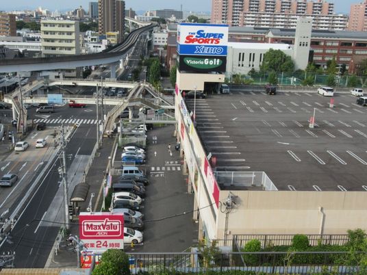 高層住宅が立ち並ぶ都会の中に静かにたたずむ高層施設です。周囲には交通アクセスも良好です。