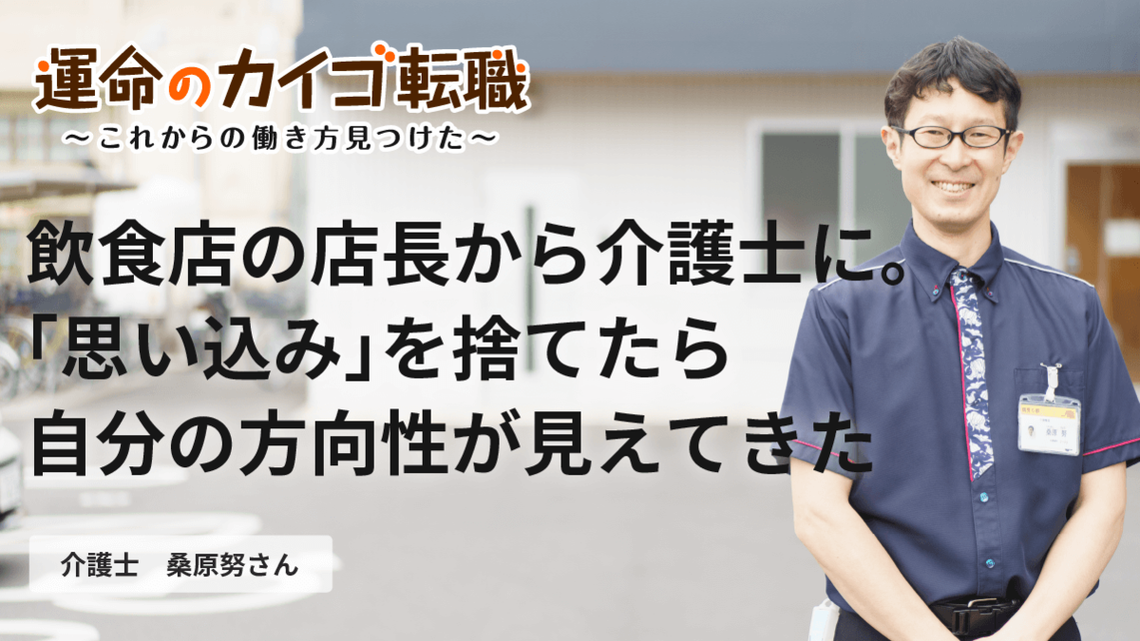 今回は株式会社シダーの子会社・株式会社パインが運営する介護付き有料老人ホーム「靎見の鄕」(つるみのさと/神奈川県横浜市)の介護士・桑原努さんに話を伺いました。前職は飲食チェーンの居酒屋店長。42歳で転職した桑原さんは「働き詰めで悩んでいた前職とは逆で、今はプライベートの時間ができた分、やりたいことが次々に増えて困っています」と笑顔で語ります。