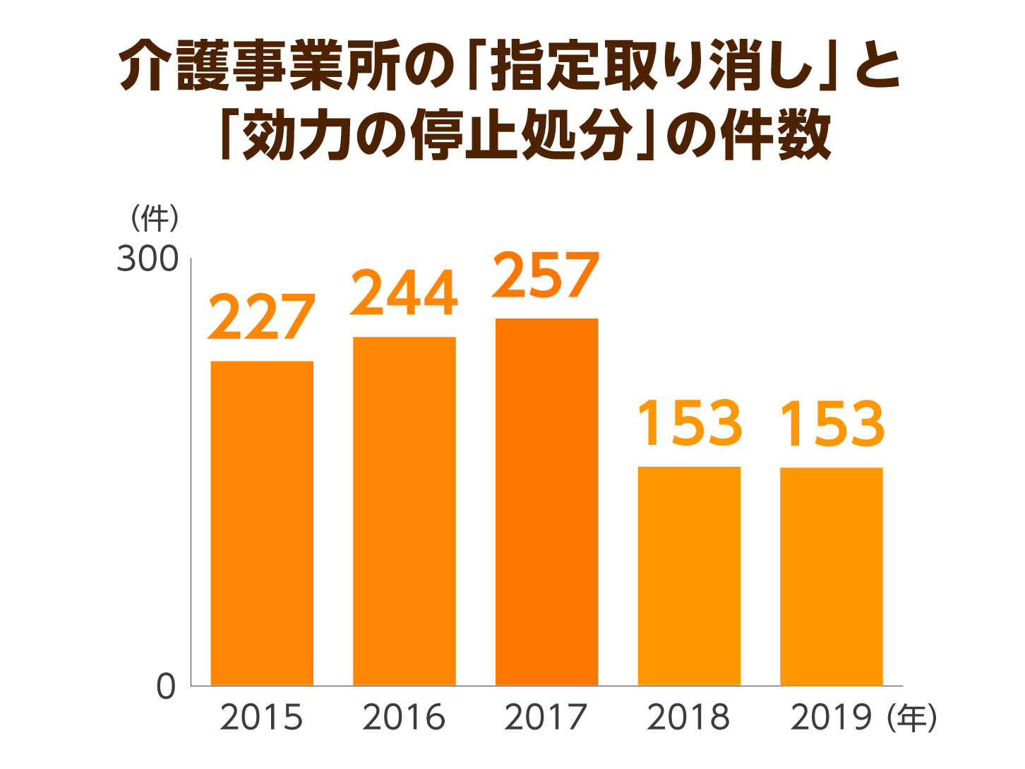 直近5年間の件数は、2015年度が227件、2016年度が244件、2017年度が257件、2018年度が153件。