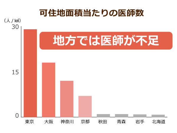 また、昨年に発表された「医師偏在指標」においても、最も数値が高い東京都と、最も数値が低かった岩手県では2倍の差があることが示されました。