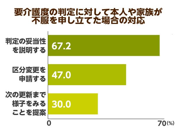 そのうち、47.0%で「区分変更を申請する」という対応を行っている、つまり要介護度の判定の見直しを行っています。