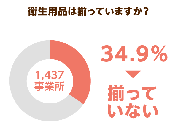 「揃っているが余裕がない」が62.4%、「揃っていない」が34.9%にものぼり、9割以上の介護事業所が満足に衛生用品を使えていないのが現状だとわかりました。