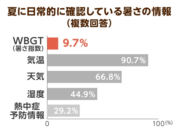 基準となる暑さ指数(WBGT)に注意している人は10%未満という現実も